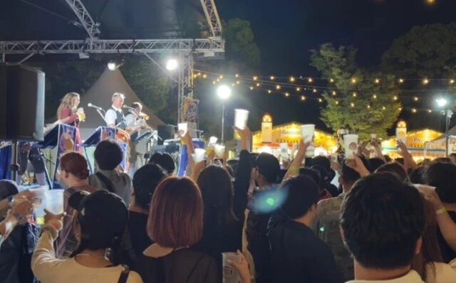 最大の特徴は、本場ミュンヘンでも演奏を行う公式バンド「ディー・キルヒドルファ」による生演奏だ。陽気な音楽に合わせて、来場者同士がジョッキを掲げ「Prost(乾杯)」と声を交わす光景は、このイベントならでは。肩を組んで行進する「ムカデ行進」など、会場全体が一体となる演出が展開される。